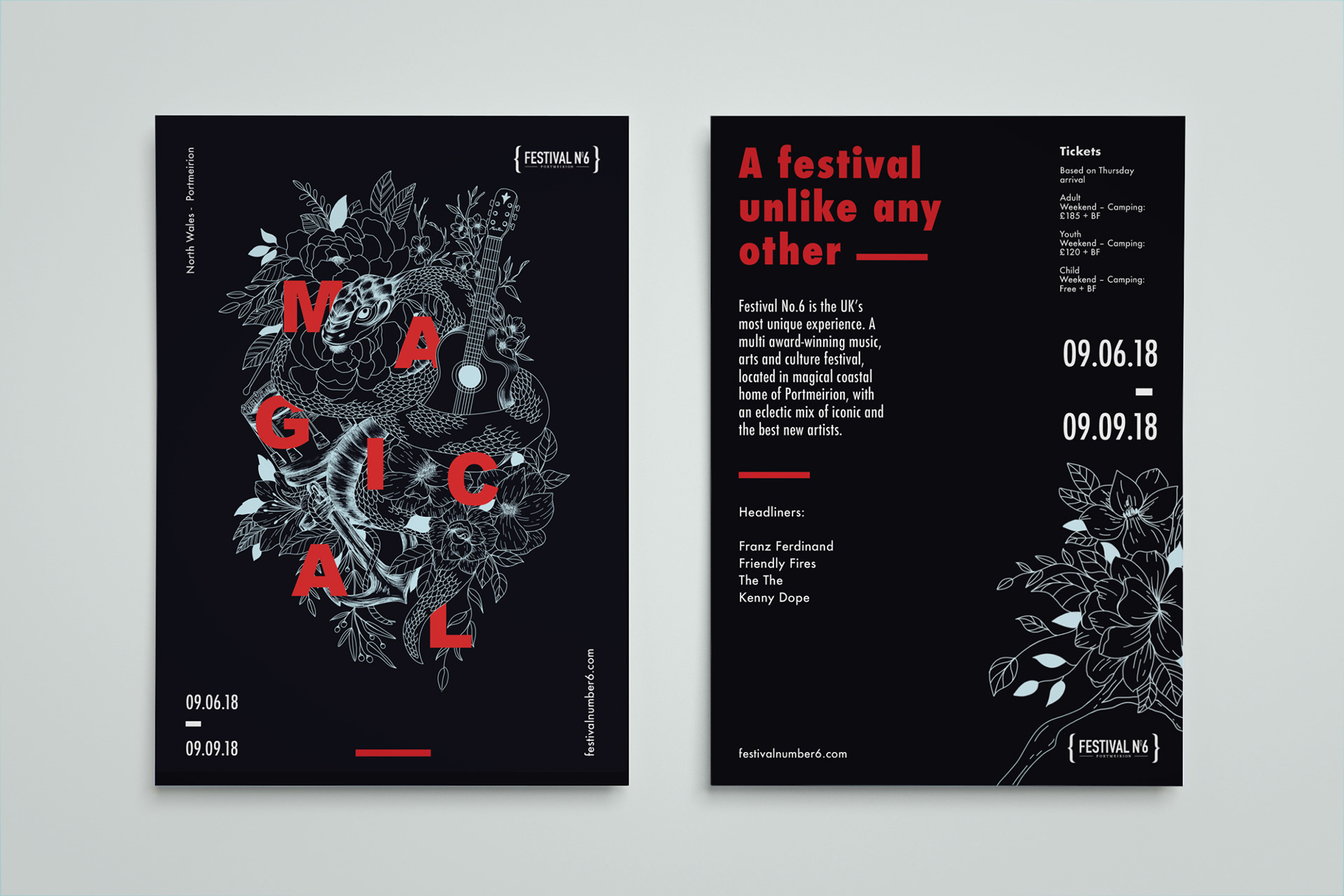 Design brochure and roll out materials for Festival No. 6, UK's multi-award winning music, art and culture festival, set in a unique mythical and magical